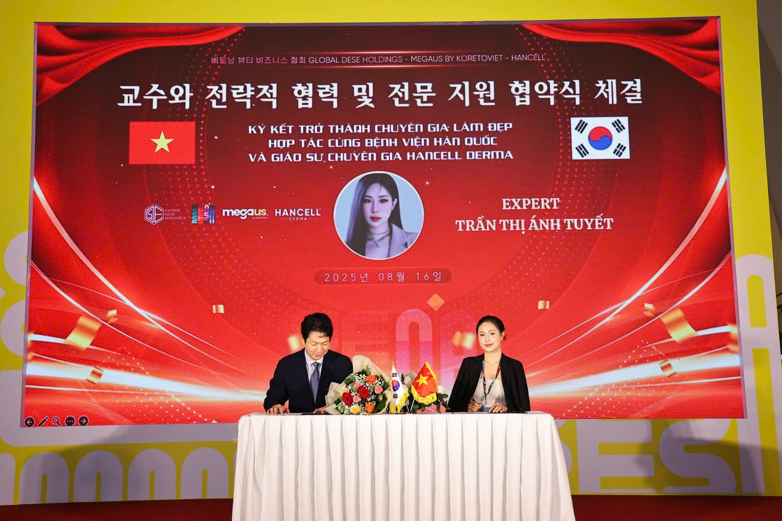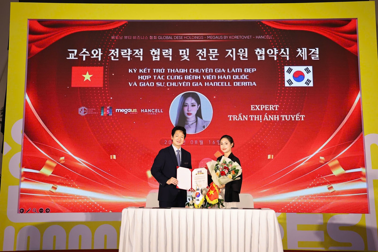 Hội Nghị Ký Kết Chuyên Gia Làm Đẹp Việt – Hàn trở thành chuyên gia của Bệnh viện Hàn Quốc và hợp tác cùng các giáo sư bác sĩ Hàn Quốc vừa được tổ chức tại Trung tâm hội nghị White Palace Phú Nhuận – TP.HCM ngày 16.08.2025.