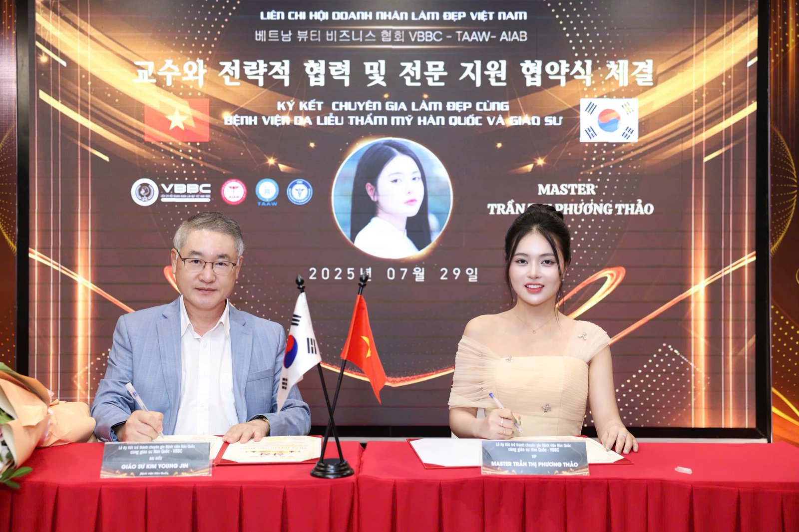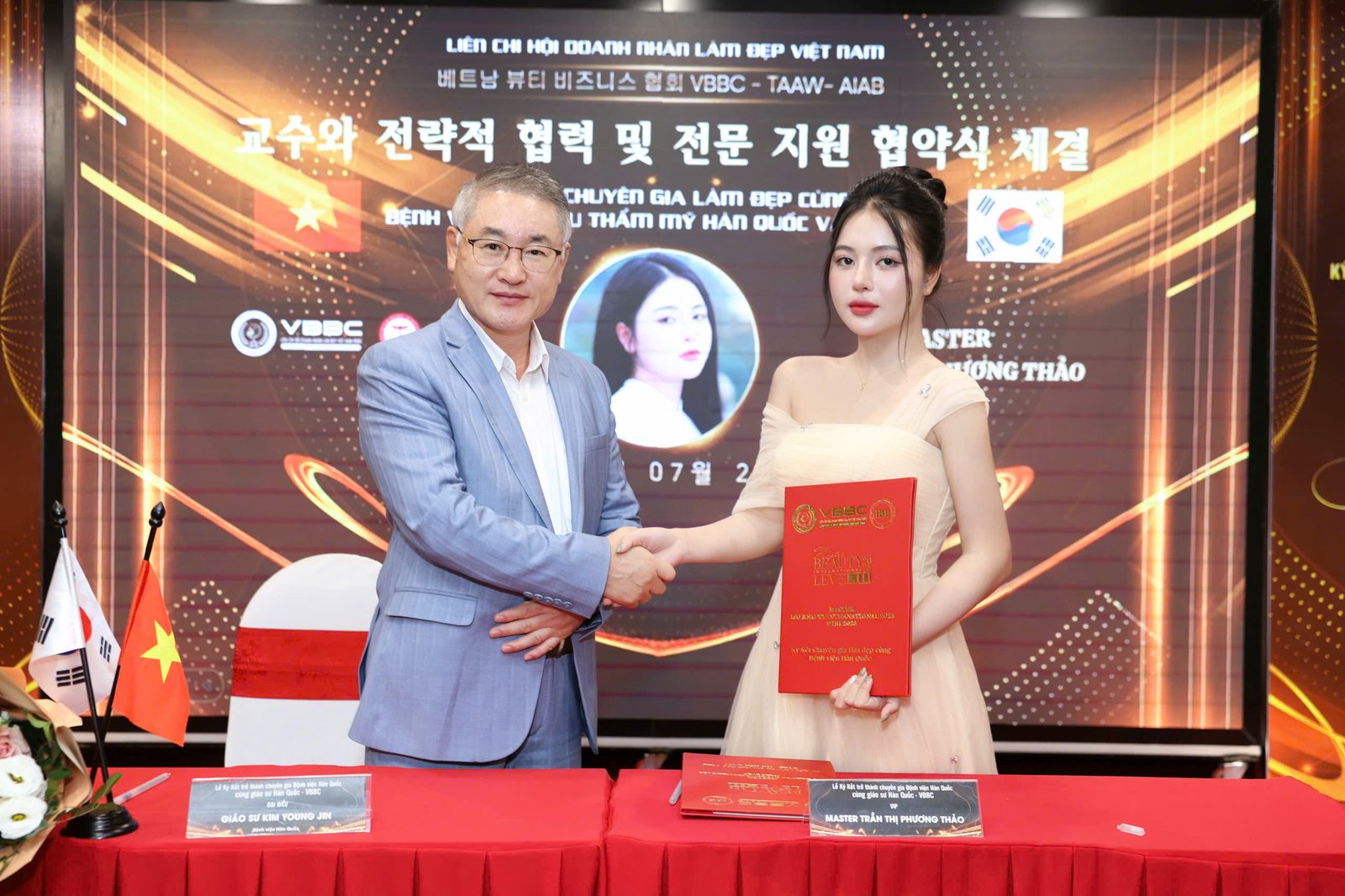 Tại sự kiện, Master Trần Thảo – Nhà sáng lập Thảo Beauty – đã chính thức ký kết hợp tác trở thành chuyên gia VBBC cùng Bệnh viện Hàn Quốc, đánh dấu một bước ngoặt trong hành trình hội nhập và chuyên nghiệp hóa hoạt động đào tạo thẩm mỹ.